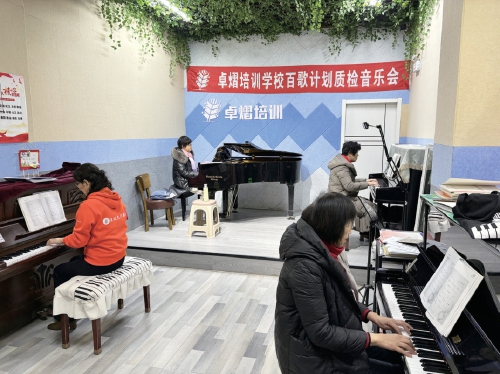 “卓熠培训学校泉城文化驿站主要开设钢琴和声乐两个科目,其中流行钢琴是我们学校特色课程。今年我们又增加了书法、美术等课程。”齐元义清楚地记得,当最初面向社区开设钢琴课时,消息一发出,首批25人的名额就爆满了。“中老年人钢琴课程,我们从成人识谱、手指灵活性、曲目搭配选择、学琴年龄段接受程度等方面考虑,曲谱和伴奏也都是我们学校独家研发的。”