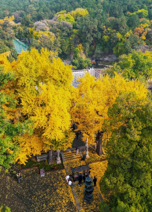 每到深秋,济南人心心念念的,便是那金灿灿的银杏了。中国四大古刹之一的灵岩寺,有数棵千年古银杏树,深秋以后,便会开启“满树金黄”模式,非常壮观。秋风拂过,一片片银杏叶飘落,站在树下如沐一场金色的雨,簌簌下落的叶子被大地接住,就像把秋天拥入了怀抱。
