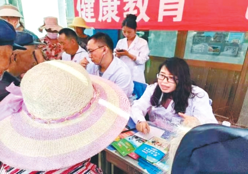 金辉(右一)为患者进行义诊。