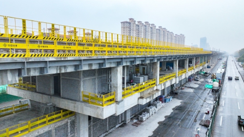 据了解,济南轨道交通8号线一期工程全长25.5公里,其中高架线路19.88公里,地下线路5.62公里。设车站14座,其中高架车站11座,地下车站3座。(王锋 摄)