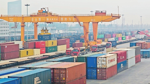 济南董家铁路国际货运中心等待发运的集装箱越来越多。
