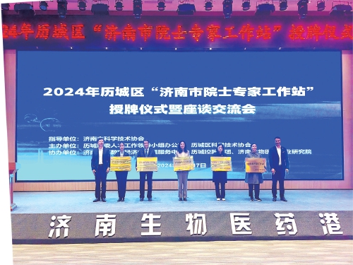 11月17日下午,2024年历城区“济南市院士专家工作站”授牌仪式暨座谈交流会在济南生物医药港举行。俄罗斯工程院外籍院士张丹,市科协党组书记、副主席贾文涛,历城区委常委、副区长文海生出席并致辞,历城控股集团党委副书记、工会主席刘娜参加活动。