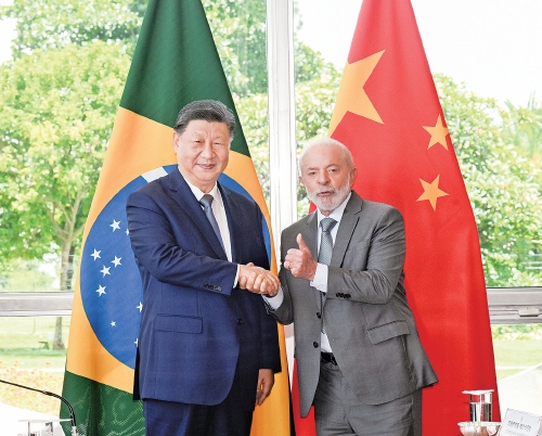 三是担当与共,为维护世界和平和正义展现中巴力量。践行真正的多边主义,坚持说公道话、办公道事,推动全球治理朝着更加公正合理的方向发展。中方高度重视巴西的国际地位和影响力,支持巴西在国际舞台上发挥更大作用,愿同巴方在联合国和金砖国家等多边机制内加强沟通协调,支持巴西明年担任金砖国家主席国工作,助推“大金砖合作”高质量发展,就坚持多边主义、完善全球治理发出更加响亮的金砖声音。