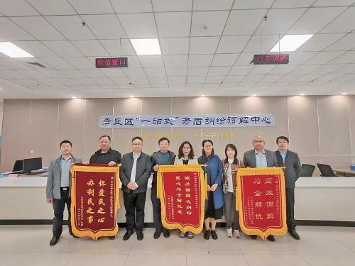 近日,济南锦文建材、山东剑锋消防工程、山东开伦建材、山东兴宏盛供应链等公司一起来到章丘区“一站式”矛调中心,送上鲜红锦旗,感谢中心为他们解决了困扰已久的工程材料款问题纠纷。记者了解到,这一纠纷是由入驻区“一站式”矛调中心的“小网兜”人民调委会和清照律师事务所共同承办,涉及金额高达7000万元。经过调委会工作人员及律师的共同努力,纠纷双方很快达成一致意见,签订《人民调解协议书》。最终,该纠纷以“人民调解+司法确认”的模式得到圆满解决,切实保护了当事人合法权益。目前7000万元的款项中已有4100余万元执行到位,剩余款项预计春节前付清。据工作人员介绍,由于金额巨大、情况复杂,如果走诉讼流程将面临长时间的等待和较高的诉讼费用。此次调解为双方当事人极大节省了时间,免去了诉讼费的额外支出,减轻当事人诉累的同时还节约了司法资源、提高了司法效率,实现了低成本、高效率的矛盾纠纷化解。