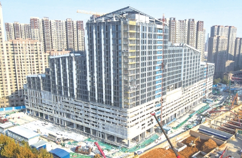12月1日,在济南轨交6号线商埠区西站(工程名)建设现场,同步进行建设的大型TOD城市综合体开发项目主体结构已经封顶,目前正在进行外立面装饰和内部装修工作。