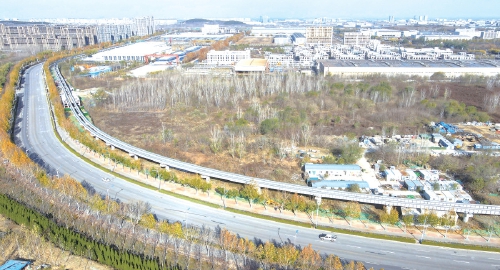 据了解,济南低运量轨道交通高新东区环线项目跨越济南高新区和济南历城区,设车站32座,串联唐冶、孙村、两河、庄科四大片区和三大产业园区。整个项目计划2025年底前建成通车。 (济南日报·爱济南记者 崔健 摄)