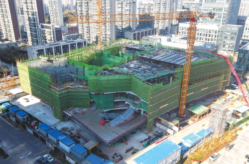 近日,在济南中央商务区,“山、泉、湖、河、城”五座超高层建筑中代表“泉”元素的华润置地华泉万象天地超高层建筑北侧,华润艺术剧院(工程名)项目建设有序推进。目前,该项目地下外墙防水施工完成,回填施工完成;地上3层结构施工完成,地上4层结构支模架施工完成80%;门厅钢构施工完成50%。