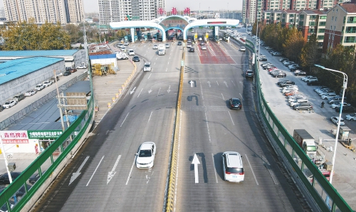 12月4日,顺河高架济南北收费站南侧掉头口已经进行常态化封闭,禁止车辆在此掉头,南向北方向最内侧车道地面标线已经更改,同时,现状伸缩护栏予以保留,以满足恶劣天气及突发事件等应急需要。