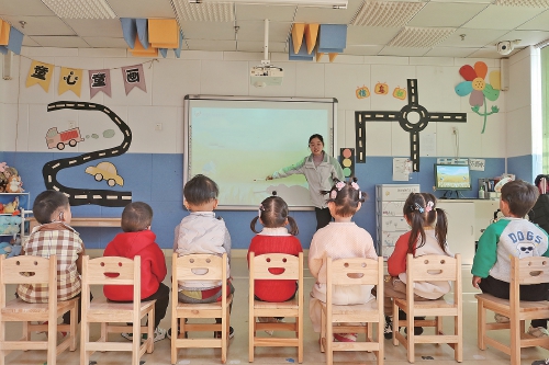 于兰昕给孩子们上集体课。