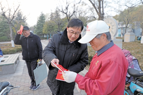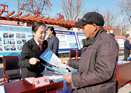 平阴县法院向群众发放普法宣传手册,使群众对宪法及法律知识有深入了解。