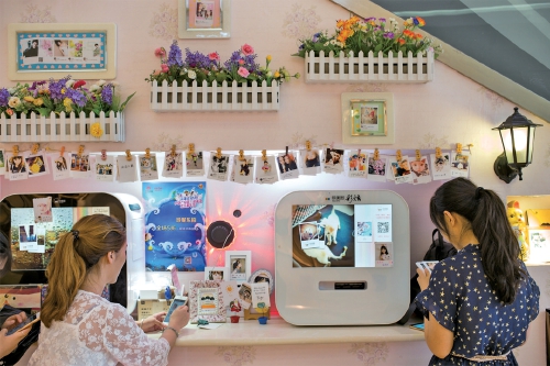济南和谐广场,手机扫码交费即可打印手机中的照片。