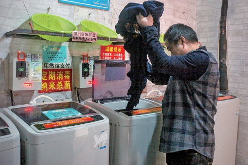 十六里河街道东河村自助共享洗衣机,7元洗一次,方便了附近租房居住的务工者。