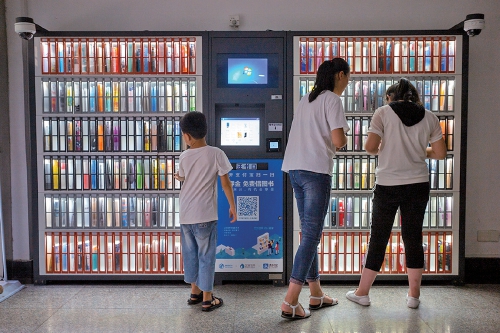济南图书馆(中山公园馆),读者用支付宝扫码免费借阅图书。