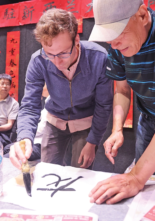 2024年春节,在新西兰惠灵顿春节嘉年华上,惠灵顿市长体验中国书法。