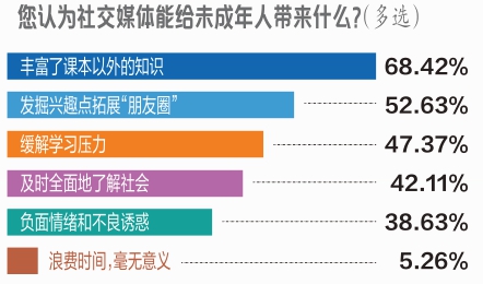 目前缺乏相关法律约束,导致社交媒体鱼龙混杂,掺杂着许多不良信息。我认为家庭、学校、同学玩伴和有益的电视节目带来的信息量已经很大了,如果这些都满足不了青少年的知识需求,社交媒体也未必能满足。天天刷手机还会让青少年过度依赖网络,养成不良习惯。