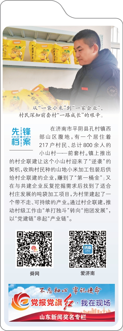 在农产品展示区,刘朋向记者展示了前套村的农家小米,“去年中秋节,济南万瑞炭素有限公司和济南龙山炭素有限公司一共采购了2.5万斤小米。今年,我们的小米卖出了4.6万多斤,销售额增长至30万元。”刘朋说,两家企业员工加起来就有4000多人,员工福利为前套村带来了“第一桶金”,也让广大村干部开始思考接下来的计划。