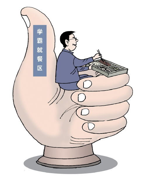 不知道在“学霸就餐区”就餐的学生,有没有产生一种被学校“捧着”和“宠着”的优越感。如果产生并强化了高分的优越感,实际上是很危险的,因为没有谁能保证学生会因一时的高分而实现人生价值。如果在“学霸就餐区”用餐如坐针毡、味同嚼蜡,浑身不自在,说明这个学生还是清醒的。有时候,被贴上“学霸”的标签并不是什么好事。