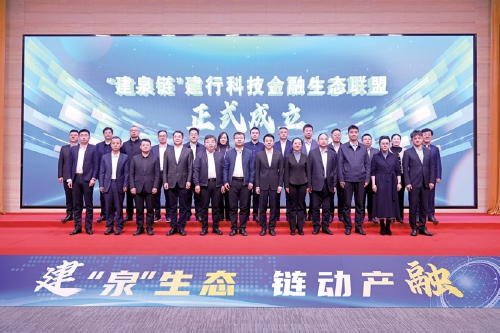 活动现场,建设银行济南分行与山东发展投资控股集团有限公司等20余家单位,共同发起成立“建泉链”建行科技金融生态联盟,该联盟旨在通过汇聚各类优质资源,以银行信贷保障科创基础资金供给,以风险资本增加科创引导资金供给,以增值服务打造科技金融生态循环系统,为科技企业提供“股贷债保”一站式综合金融服务,助力企业成长与产业升级,助推新质生产力加速释放。