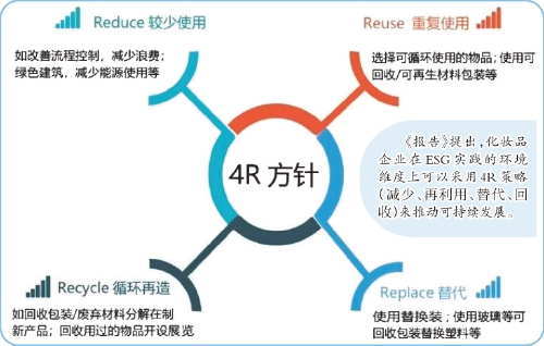 目前,国际化妆品领军企业正通过减排、使用天然原材料、使用可循环包装等方式引领行业变革。在中国,随着监管框架的不断完善和消费者对绿色产品的偏好增强,ESG实践受到高度重视。政府出台政策推动行业转型,协会积极参与引导,企业逐步探索实践,产品创新融入ESG理念,但是整体还处于起步阶段,仍有提升空间。