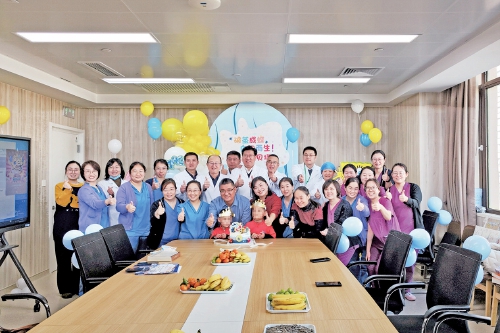 医院副院长辛涛,以及新生儿科、产科、小儿外科、眼科、耳鼻喉科等曾参与过舒克、贝塔救治的医务人员代表来到现场共同为舒克、贝塔庆生。