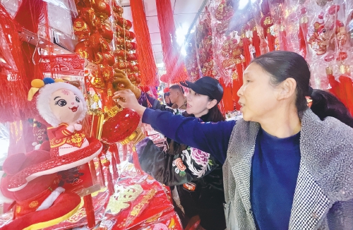 12月22日,济南市民在选购新年挂饰。时值年末,新年氛围也越来越浓,各类喜庆红火的新年饰品迎来销售旺季。挂件、窗花、灯笼、对联已经开始热销,节日氛围逐渐浓厚。