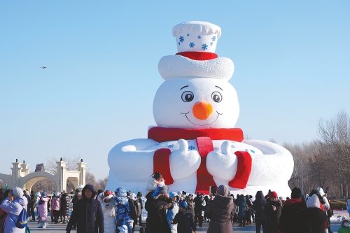 12月23日,人们在第37届太阳岛国际雪雕艺术博览会上游览。当日,第37届太阳岛国际雪雕艺术博览会试开园。本届雪博会以“同梦同心·冰雪传奇”为主题,规划面积150万平方米,计划建设赛事及艺术雪雕260余处,总用雪量15万立方米。园区深度融合国风元素,重点打造6个主题景观区和雪人IP秀、雪趣研学营2个拓展区。 (新华社发)