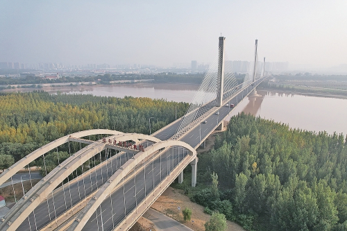 济南黄河凤凰大桥鸟瞰(崔健 摄)
