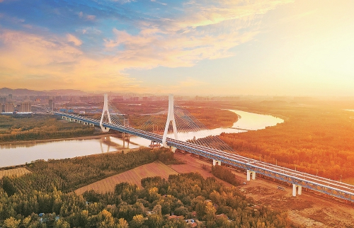 夕阳下的济南黄河大桥新桥(崔健 摄)