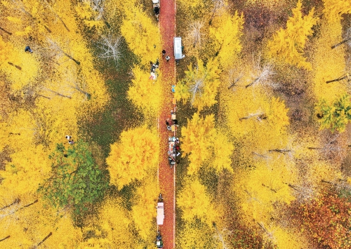 深秋济南,黄河银杏林绽放金色魅力(王锋 摄)