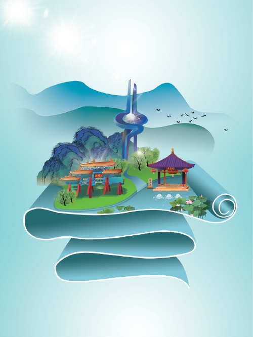 极目远望。英雄山峻,腊山秀奇,华山耸峙,药山含翠。五龙潭清,黑虎泉猛,珍珠泉妙,百脉泉灵。护湿地,建体系,林长引领新生态。绿笔绘盛景,幸福之花开。