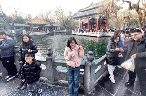 1月9日,游客在济南趵突泉畔赏泉。冬日的济南泉水游热情不减,泉水喷涌不息,水质清澈甘冽,游客漫步泉边,观千泉竞涌、览一城冬色,体验不一样的冬日感觉。(济南日报·爱济南记者 赵晓明 摄)