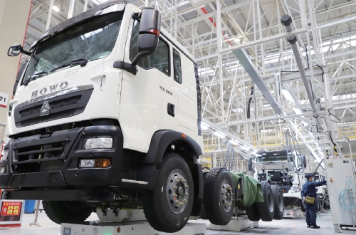 在中国重汽集团济南卡车股份有限公司(济南卡股)莱芜工厂,焊装车间内,智能机械臂精准地完成每一道焊接工序;总装车间内,人机配合,300多道工序,默契熟练,到处一派繁忙有序的生产景象。