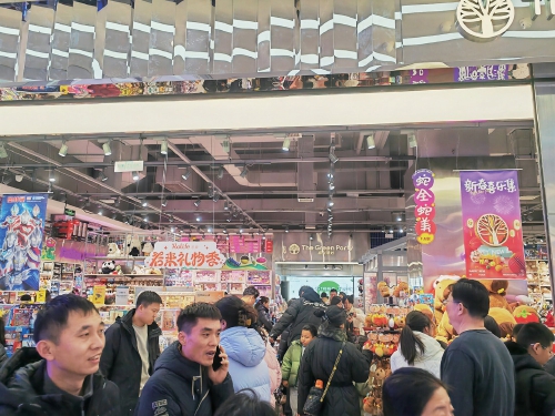 从商超到商圈,年货盛宴的年味儿氛围感十足。
