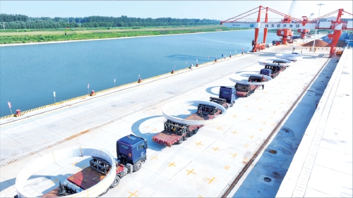 伊莱特制造的18件总计174吨风电法兰从小清河发运。