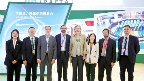 玛尔塔·贝坦索斯(右四)来到北京风能展伊莱特展位。