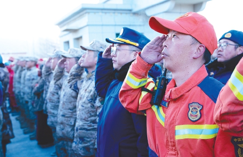 1月13日上午9时30分,西藏定日6.8级地震遇难同胞悼念仪式在受灾最严重的长所乡举行。 (新华社发)