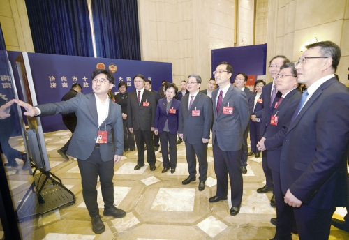 在市两会新闻中心,刘强一行察看了媒体工作区和融媒体访谈区,认真听取大众日报、山东广播电视台、齐鲁晚报、山东商报、大众网、鲁网、济南日报、济南广播电视台等省市媒体两会新闻报道情况介绍,浏览重要版面和新媒体报道产品,与省市新闻工作者深入交流。