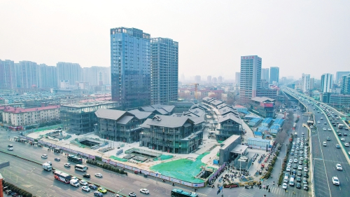近日,济南天桥区万虹中心项目建设取得显著进展。目前,万虹中心的仿古商业街部分外立面施工接近尾声。商业建筑大面积的玻璃幕墙与仿古屋顶相互映衬,将现代化与传统元素完美融合。商务楼部分,东侧和中间的高层商务楼已经封顶,正在进行外立面施工。