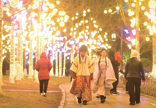 1月22日是农历北方小年,在大明湖景区和五龙潭公园,济南市第44届天下第一泉迎春花灯会正式亮灯,吸引了不少市民游客驻足欣赏。据了解,今年天下第一泉迎春花灯会范围将从趵突泉景区扩展至大明湖、五龙潭及护城河。除趵突泉景区外,其余三处迎春花灯于农历小年正式亮灯,待市民游客提前解锁新春佳节赏灯体验。其中,大明湖景区花灯以“欢乐中国年”为主题,在大明湖南北岸及超然楼等方位呈现10余组主题灯组和部分氛围亮化,通过创意IP形象、巨型灯笼、十二生肖与古风乐器结合等形式,展示传统文化和节日氛围,为市民游客带来欢笑和温暖。五龙潭公园作为市民茶余饭后漫步休憩的理想之地,今年成为天下第一泉迎春花灯会的重要组成部分,以8组绚丽多彩的氛围亮化和2组主题灯组营造出“泉城湖畔的悠然时光角”,让市民游客在自然美景与璀璨灯火中感受幸福时光。(济南日报·爱济南记者 崔健 摄)