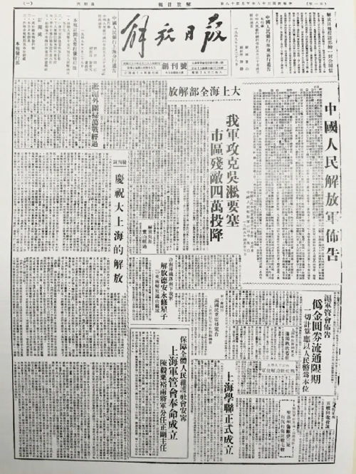 创刊号共8个版,刊登的内容都是关于上海市解放等最新动态:发刊词《庆祝大上海的解放》,消息《我军攻克吴淞要塞,残敌四万投降》《上海军管会奉命成立》。为了满足广大读者对党和政府政策的关切,创刊号还特意用了两大版的《文献》专刊,刊登党和政府的各项重要政策、文件。报纸上还登载了大量告示,起到了稳定民心、巩固政权的作用。