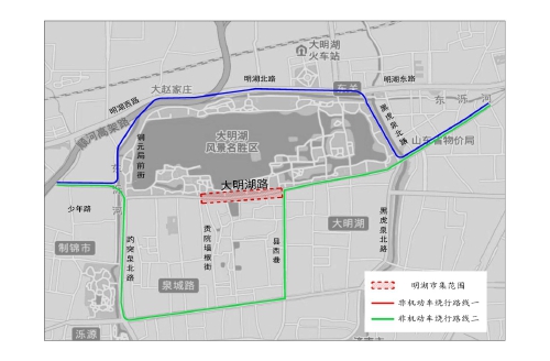 举措二:大明湖路(趵突泉北路-贡院墙根街段)在管控时段,仅允许驻地车辆东向西单向通行;贡院墙根街在管控时段,仅允许驻地车辆南向北单向通行。
