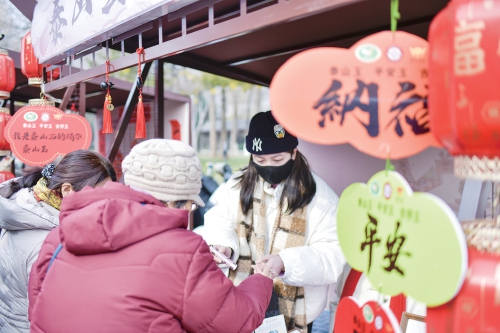 在明湖市集文创非遗展区,生动展现传统文化魅力,感受新春氛围。(王锋 摄)