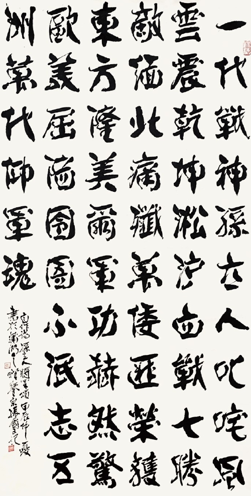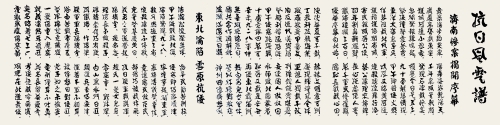 《抗日风云谱》书法长卷节选。共一万三千余字,二十八个章节。卷高六十八厘米,长五十米,历时三年半完成。章节如下: