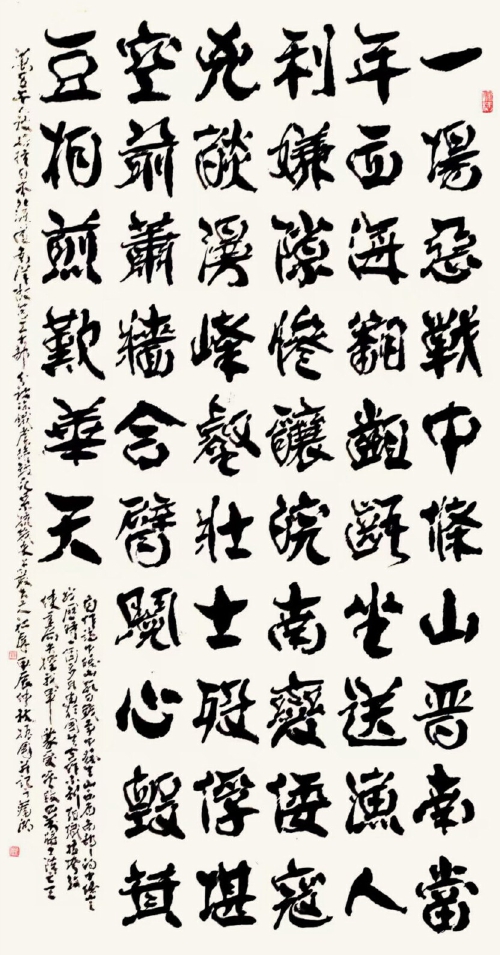 张振国,字鉴泉,一九四七年生于济南。少时受父亲张雪锋先生熏陶,学书习诗。稍长拜著名书法家张立朝先生为师,从唐楷入手,后遍临诸体,现已自成风貌。书法平实而坚毅,严谨而重法度,一丝不苟。不仅具有深厚的文化底蕴和艺术内涵,更展现出一种独特的生命状态和审美要求。