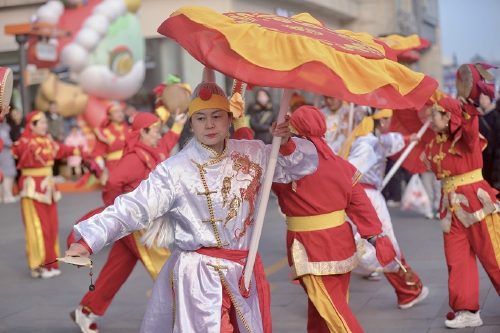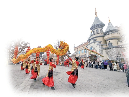 融创乐园为观众带来一场年味十足的非遗盛宴。(王章华 摄)