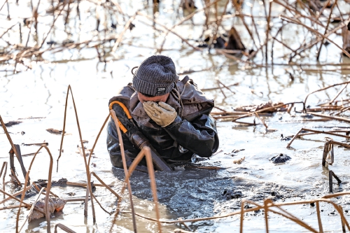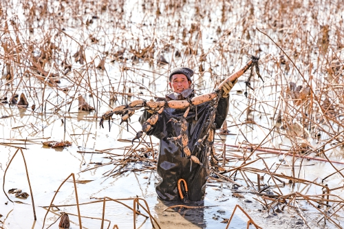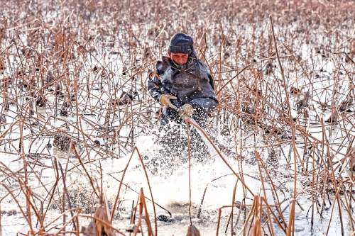 挖藕是个体力活,即便寒冷的冬天忙碌过后也会满头是汗。