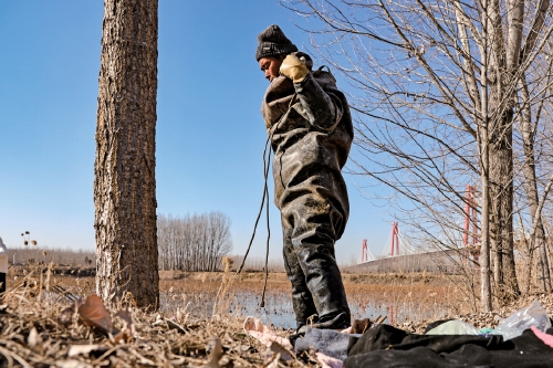 周玉杰身子俯在水中,佝偻着腰,经常会有水溅到脸上。