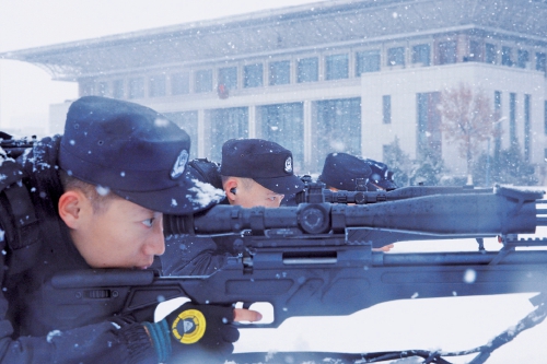 队员在今冬初雪中进行恶劣天气环境下精准狙击训练