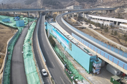 2月6日,在济南龙鼎立交枢纽改造施工现场,北向西匝道东侧首段新建箱梁已经显现雏形,匝道桩基与墩柱施工在有序推进,二环南路快速路相邻山体外侧搭建的脚手架已准备就绪,为匝道建设奠定基础。