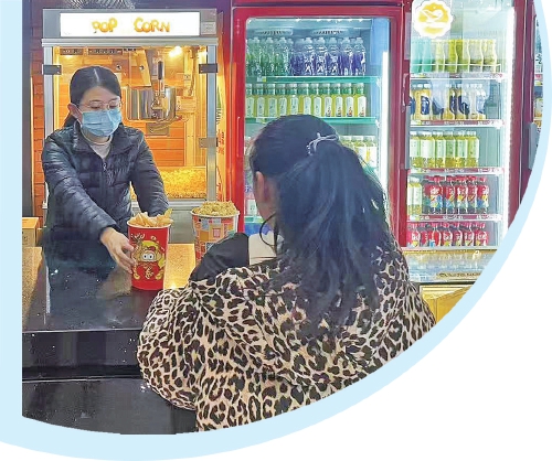 8点半,她开早会分配工作,各处安全检查后,正式开始了一天的工作。王聪聪说,今年初一的电影基本上场场爆满,大厅里一直人来人往,让人感受到春节档的火爆。